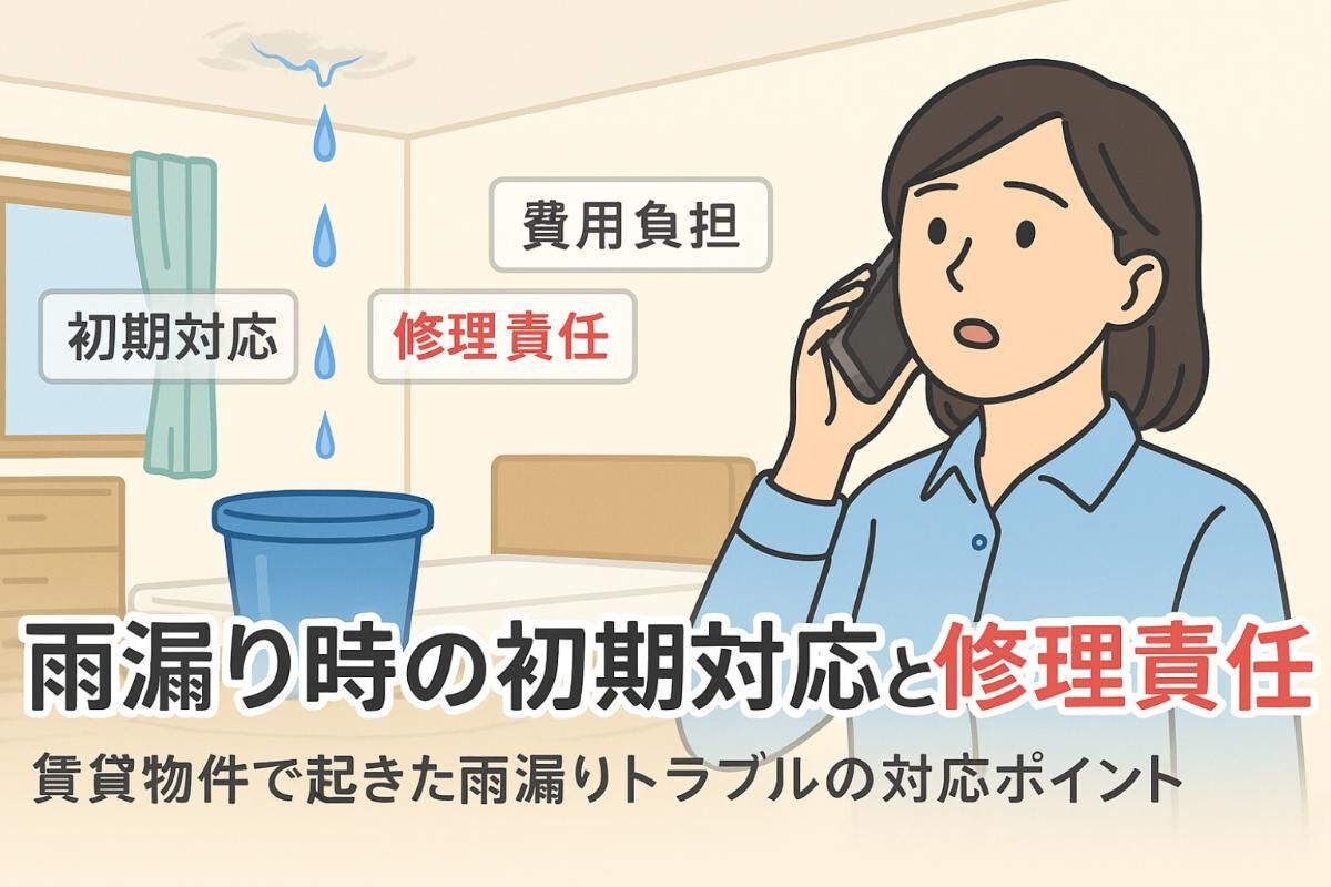 賃貸住宅で雨漏りが発生した際は、被害の拡大を防ぎながら、迅速かつ正確に対応することが重要です。安心して生活を続けるためにも、正しい初動が求められます。住人自身が状況を正確に把握し、管理会社や大家へ適切に連絡することが、スムーズな修理や家賃減額交渉のポイントとなります。